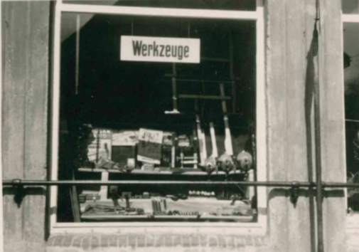 Als Eisenwarengeschäft eröffnete Herr Buschmann das Geschäft mit Waren für Handwerker wie Klempner, Schreiner und Dachdecker.