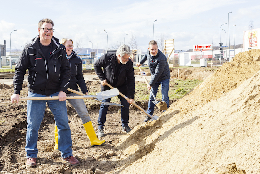 Zum offiziellen Spatenstich im März stellten wir uns sowohl in digitaler Form als auch physisch am neuen Standort auf. Aufgrund der anhaltenden Pandemie entschieden wir uns, zahlreiche Partner und Wegbegleiter per Videobotschaft zum Spatenstich einzuladen. Neben einer kleinen kulinarischen Stärkung wurde tatkräftig angestoßen und ein paar Dankesworte an die Anwesenden gerichtet.